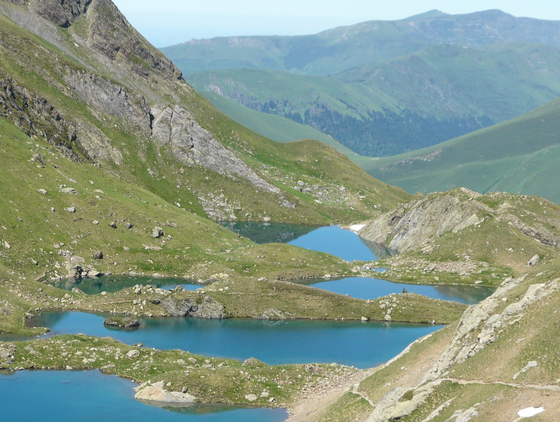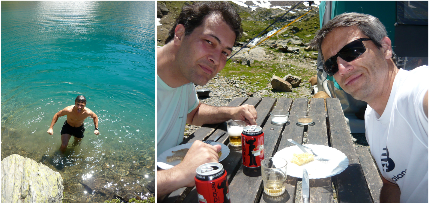 From top left to bottom right: (a) Carlos by the “Embalse de Paso Nuevo”, (b) Two happy chaps, (c) On the wrong side of the river, (d) Road to Hospital de Benasque.