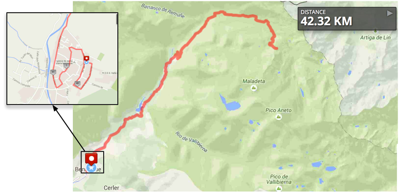 For the next couple of days I would take my computer and play with maps in any spare time. I came up with horrendous courses with even more climbs than in the original one. It wasn’t looking good until I decided to include a loop from the hotel Hospital de Benasque and La Besurta. The loop wasn’t really flat, but compared with the other climbs that I would have to face, the 200 m of difference in altitude was nothing. That was it, course decided! The change came even with the bonus of a support crew in the last 12 km, and two runners to share the road with me: Carlos for 20 km and Nadja for the last 12 km.