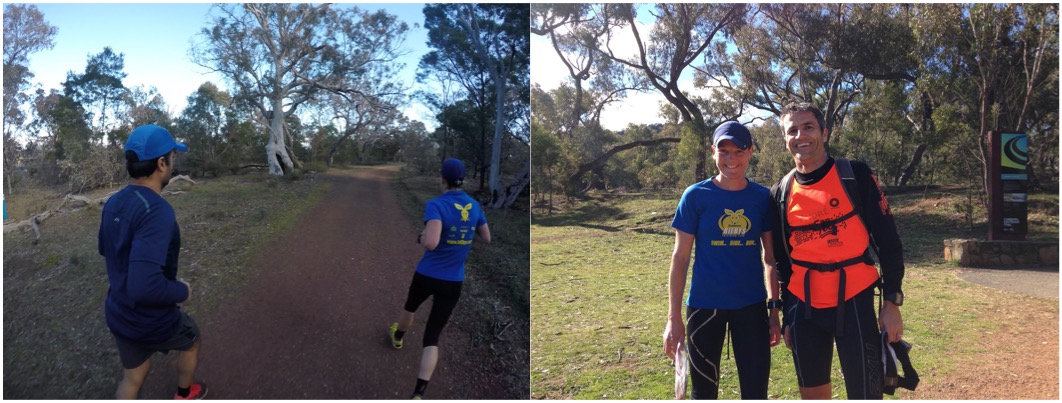 I reached the base of Mount Majura at kilometer 14. There I met Kylie, a friend from the Bilbys triathlon club that had promised to run about 20 km with me. She had brought with her Guy Jones, another amazing triathlete to run with us. I was definitely in good company. Another Bilby, Petra Lean, was also there to take a few pictures and wish me good luck. What a lovely friend! I should have stopped to hug you, Petra!