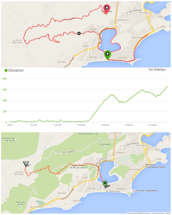 I was found by Debbie, Crass and Joe that had arrived there before. Later I learned that Rafa and Ramon also went there but arrived a bit late and missed me. At the statue a tourist came to me to congratulate for my run. He had seen me going up that last hill. He was even more impressed when Joe told him that those were the last 2 km of a marathon. I finally drank the cold water I was dreaming about, took some photos, left some more tourists disgusted with my sweat and had a can of guaraná. We didn’t stay up there for long as we had a table booked for lunch. The three would go back to the base in a van but my ticket didn’t included the transportation up and down those last 2 km. So, I decided to go down running. Two km downhill at that stage would be nothing. Not only did I ran down, but I also got a course record for that segment on Strava. Well, I wasn’t expecting that!