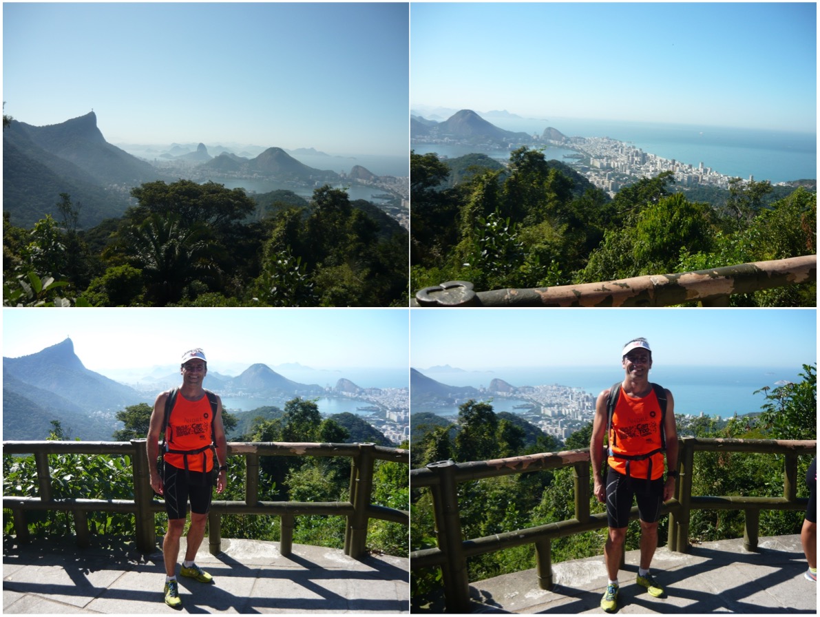 From there I began the tough and solitary journey to the Christ statue. I love the forest and I felt energized, happy and at home. In any moment I thought about fatigue and was simply enjoying the sounds of the birds and the monkeys. I even interpreted their noise as yells of support and encouragement. At some points these sounds were replaced by the company of people that were there to watch the cycling event: the athletes would come from a different direction and go down following the road that I was climbing. I should thank the volunteers, tourists and spectators that helped me taking photos and supporting me after listening to the ten seconds explanation about my run.